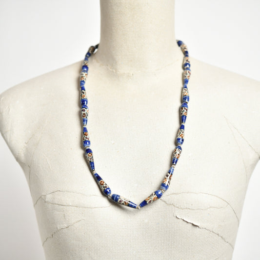 vintage porcelain necklace with silver bead